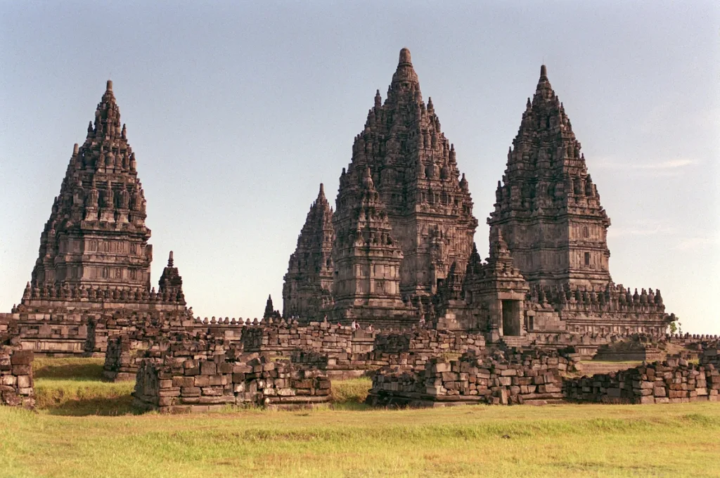 Der dem Hindu-Gott Shiva gewidmete Tempel in Prambanan auf der indonesischen Insel Java. (Aufnahme vom Mai 2000). Der Hindutempel wurde 1991 von der Unesco als Kulturdenkmal in die Welterbe-Liste aufgenommen., View of the Prambanan Temple, which was dedicated to Shiva, on Java, Indonesia. Taken in May 2000. The temple was declared Unesco World Heritage Site in 1991.