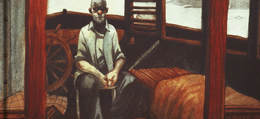 قفز جيم إلى قارب النجاة، بإلحاح من البحّارة، وقد تملّكه الخوف من الغرق قبل أن يتأكّد من غرق السفينة التي حجبها الظلام عنه؛ فتوّهم أنه نجا بنفسه؛ لأن مصيره سيكون الهلاك لو بقي فيها، لكن إحساسا دفينا بالإثم جعله يتمنّى لو شارك الغرقى مصيرهم، فلا يجوز أن يتخلّى البحار عن مسؤوليته في وقت الخطر، ولا ينبغي أن يتحمّل الأبرياء وزر خطئه؛ فالهاجس الأخلاقي المسيحي، الذي تربّى عليه، جعله يتكفّل بنتائج أفعاله، وعاش بإحساس من خان الأمانة التي عهدت إليه، فليس من شيم البحّار الأبيض الهرب عند أول شعور بالخطر، إنما عليه تأمين حياة الآخرين قبل اتخاذ قرار مغادرة السفينة. وقد سيطر عليه التنازع بين شعوره بالذنب والبراءة قبل أن ينجلي له مصير الباخرة “بتنا”. وحينما علم بنجاتها من الغرق ازداد شعوره بالخطأ؛ لأنه تعجّل قرارا قبل التأكّد من صحته.