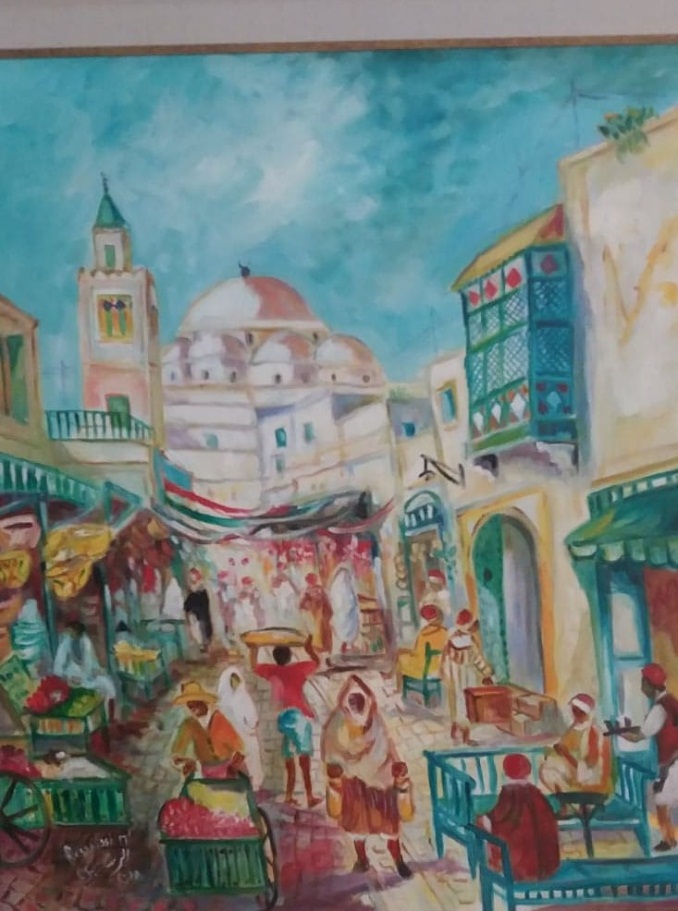 (صورة 1- “باب سويقة”، أحمد الرّصايصي، تونس، زيتيّة على قماش، 2017، مجموعة خاصّة)