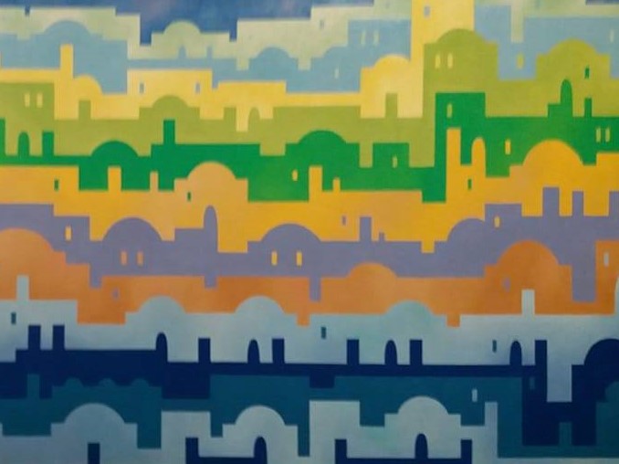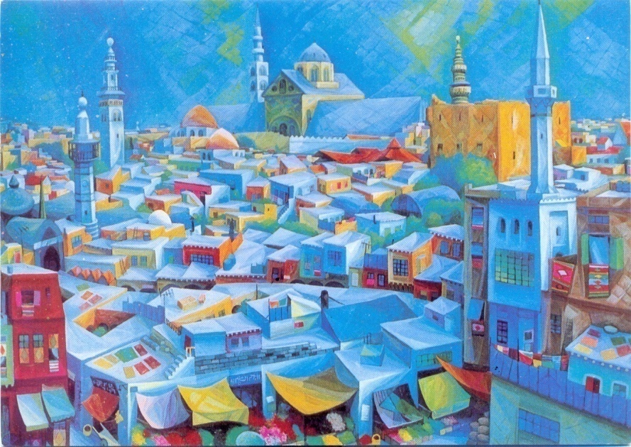 (صورة 2- “دمشق القديمة”، ممدوح قشلان، سورية، زيتيّة على قماش، 1996، مجموعة اليونيسيف، الأمم المتّحدة)