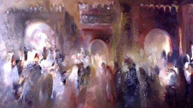 تكون المدينة، في هذا الأفق، قوّة جاذبة إلى الفيتيش الرّمزي للمكان، ومن ثمّة يتوقّف الزّمن داخل أسوار المدينة وورشات الرّسّامين وتتحرّك المطابع لاستنساخ صوَرٍ للمكان في ماثولِيَّتِه وتصوّره السّتاتيكي (الرّسّامون المعمّرون[12] ومن خطا خطوهم)، حيث المدينة تصويرة سياحيّة ليست على ذمّة سكّانها بل هي ملك للآخر-الزّائر (السّائح، المستشرق، وهو موطن جماليّة سرديّة متثائبة ورّطت داخلها جماعة الفنّ السّاذج باسم الأصالة. إذ العروج إلى مدينة “الأصالة” أصبح بمثابة تطهير (catharsis). وهو ما جذب عدداً من الرّسّامين من أجل الانخراط في “صناعة” هذا الحنين التّطهيري (ممدوح قشلان من سورية، أحمد الرّصايصي ومحرزيّة الغضاب من تونس، محمّد المرابط من المغرب، (صورة1 و2).