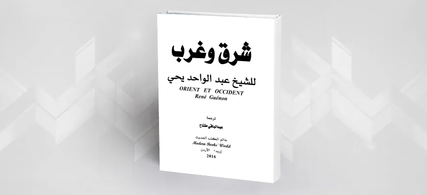 الكتاب “شرق وغرب” للمؤلف الفرنسي ريني غينون الذي غير اسمه إلى عبد الواحد يحيى، ترجمه عبد الباقي مفتاح، وصدر عن عالم الكتب الحديث، الأردن، الطبعة الأولى، 2016م.